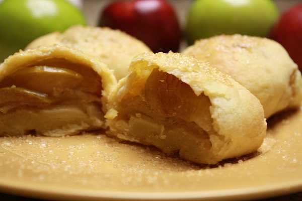 1/8th inch thick; cut into 4" circle; top each circle with apple